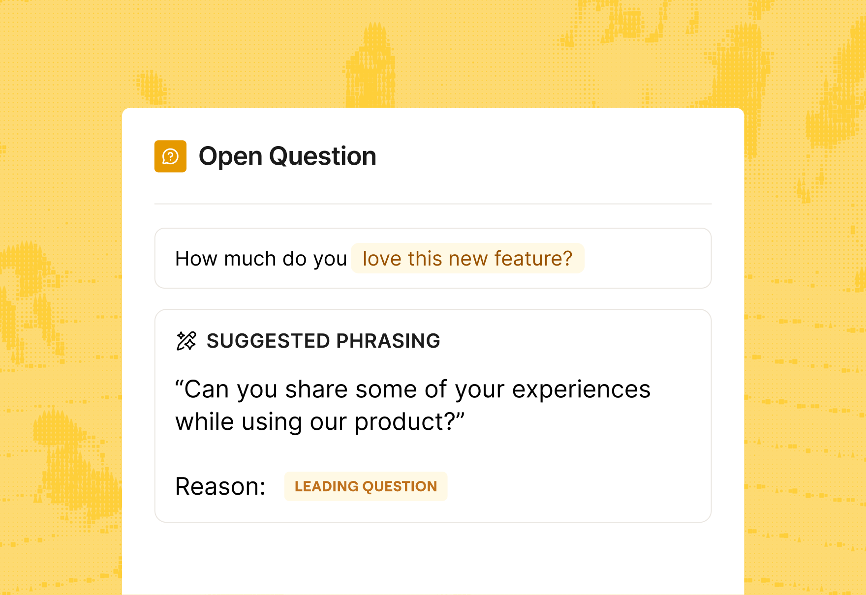 Measure customer satisfaction, test new ideas, and dive deeper into feedback with surveys to move you closer towards your product goals.