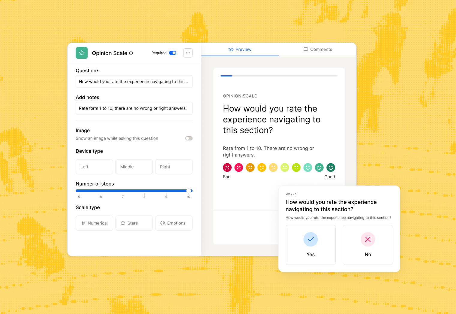 Measure customer satisfaction, test new ideas, and dive deeper into feedback with surveys to move you closer towards your product goals.